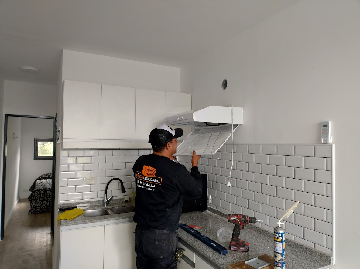 Baño completo ( banitory + Inodoro + espejo ) Cocina : Bajo mesada , Lacena y mesada de acero inoxidable .Opcional : Aire , Termo tanque , mobiliarios de oficina